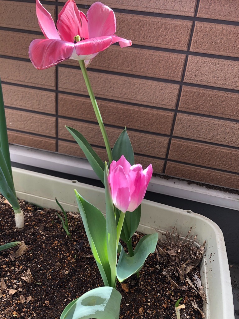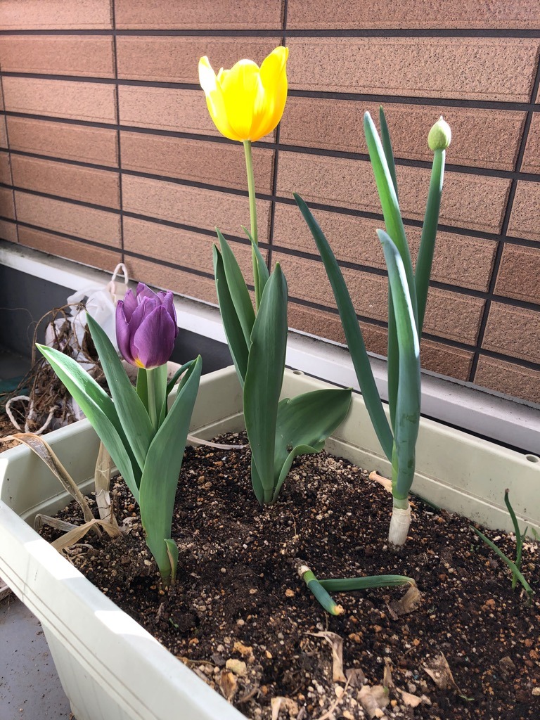 我が社の庭のプランターにチュウリップの花が咲きました。