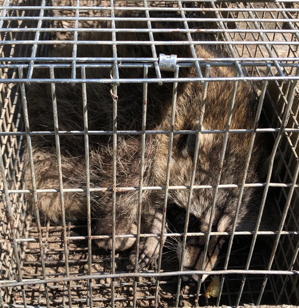アライグマ🦝を捕獲しました、可哀想ですが、明日、保健所に連れていかれます。